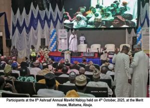 The Kwara State Commissioner for Education and Human Capital Development, Dr. Lawal O. Olohungbebe, was the distinguished guest at the 8th Annual Mawlid Nabiyy held on 4th October, 2025, at the Merit House, Maitama, Abuja, under the leadership of Imam (Dr.) Sharafudeen Abdulsalam Aliagan, the Chairman and Founder, Ashraaf Islamic Foundation.